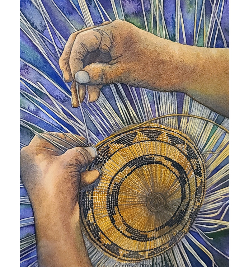 Her work has won many awards and has been included in many private and public collections. Her work can be seen at Valley Art in Walnut Creek. She is a frequent exhibitor at the Olive Hyde Gallery in Fremont and the Harrington Gallery in Pleasanton, all in California. She is a member of Artists 7, a women's art group that travels together and shows their work throughout Northern California. She is also a member of the Studio Art Quilt Associates and Pleasanton Art League.