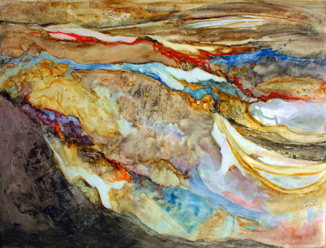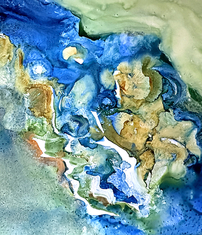 My experiences outdoors, as well as painting en plein air, contribute to my abstractions. Painting on Yupo gives me the freedom to explore possibilities.