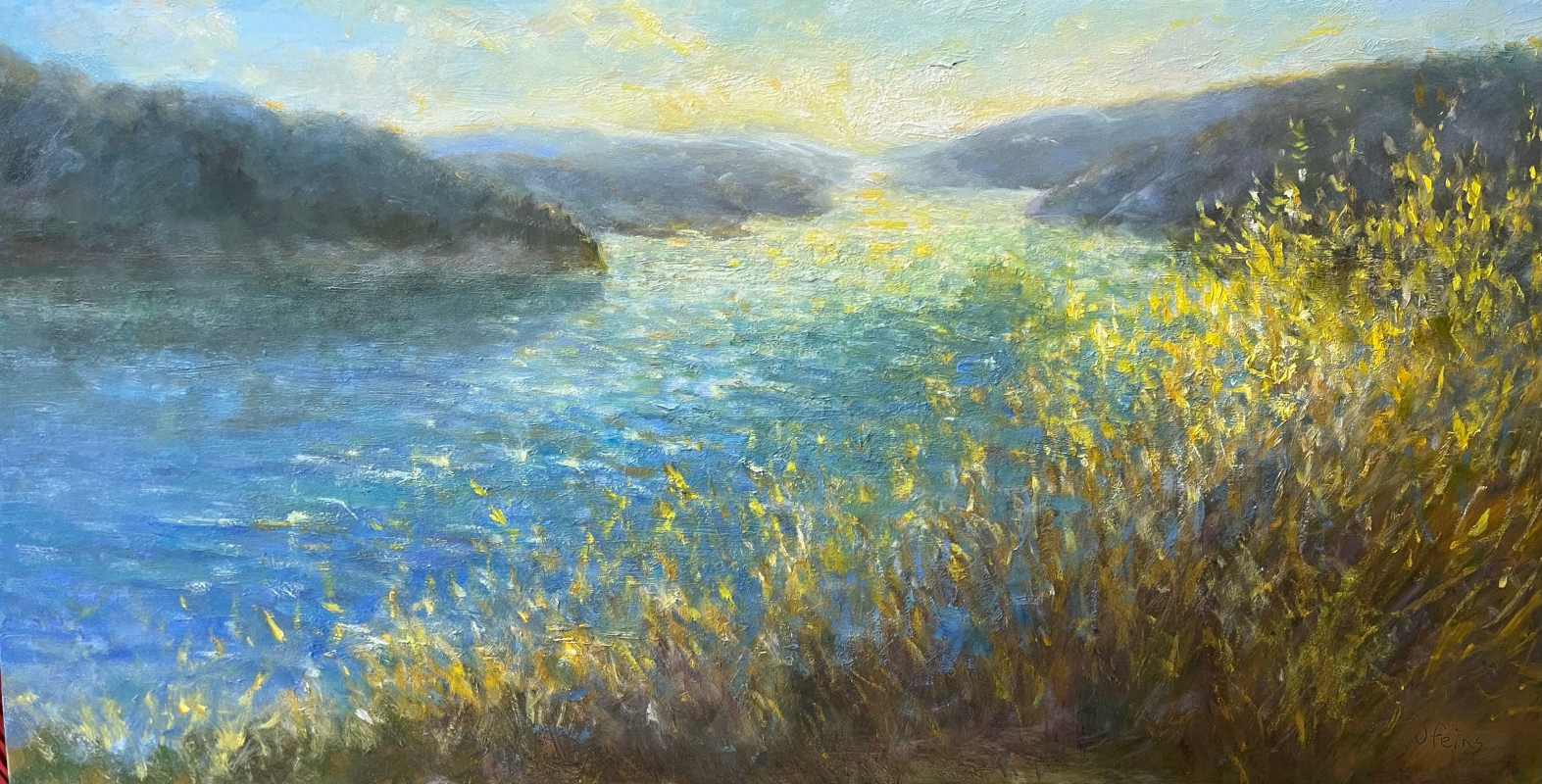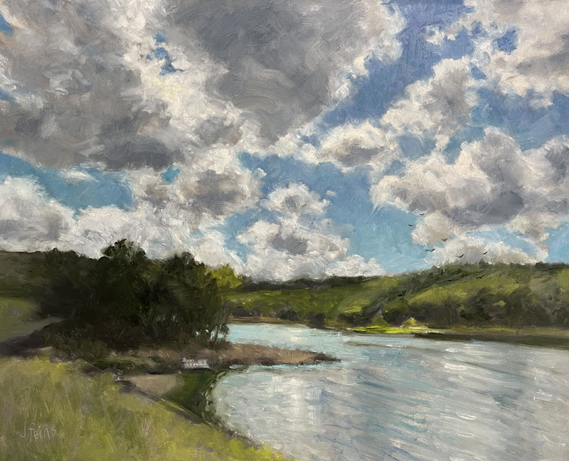 I paint to capture qualities of shifting light, long vistas of space evoking possibility and freedom, visual evidence of the movements of wind and water, and the complexities of vision, like rocks submerged in water seen through a surface reflection of the sky.
