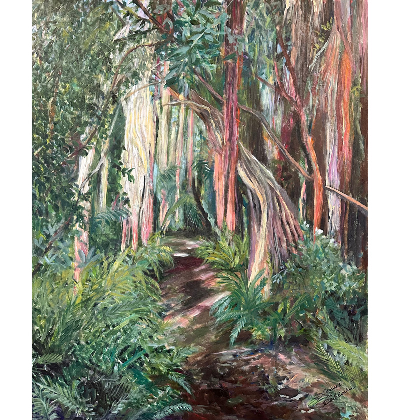 For the past few years she has focused solely on painting – specializing in nature and landscapes. She works mainly in acrylic, using a bold color palette in a post-impressionist style.
