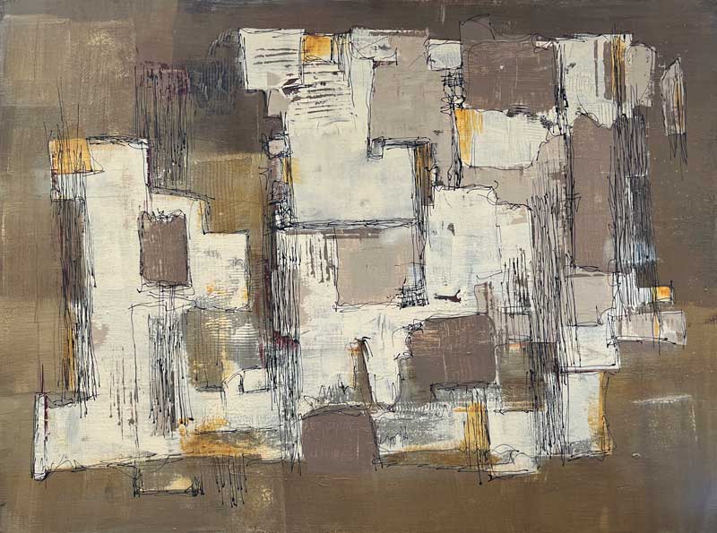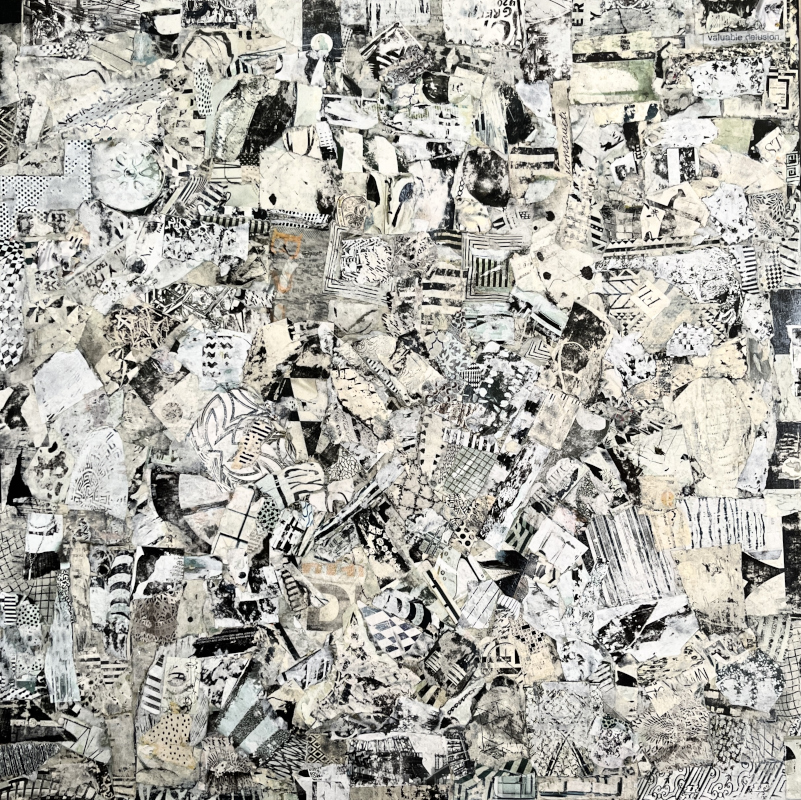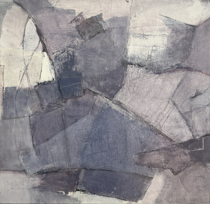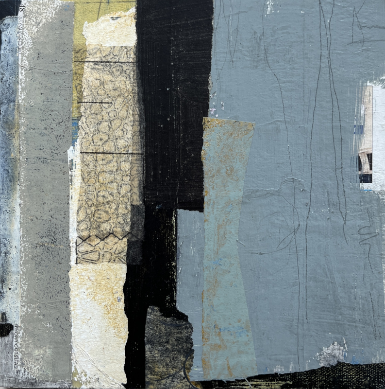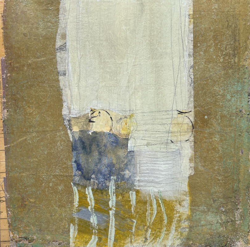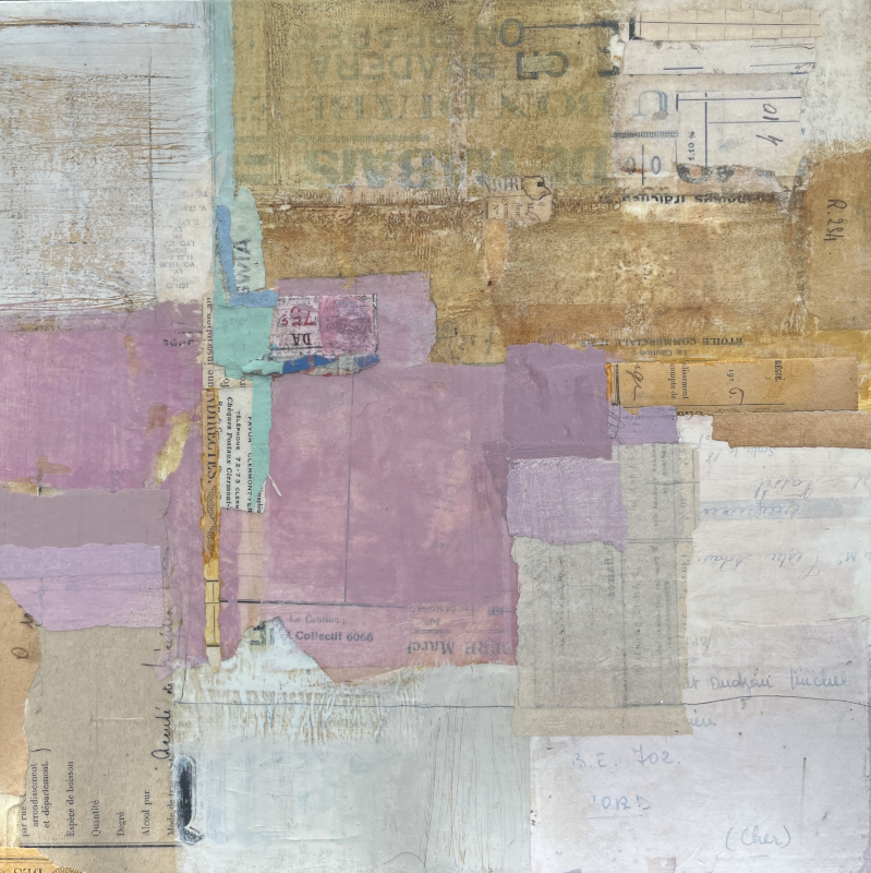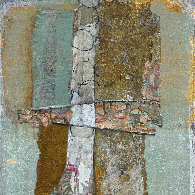 I work without a plan. Each brushstroke, collage piece or mark informs the next until the painting comes to a place of symmetry and balance.