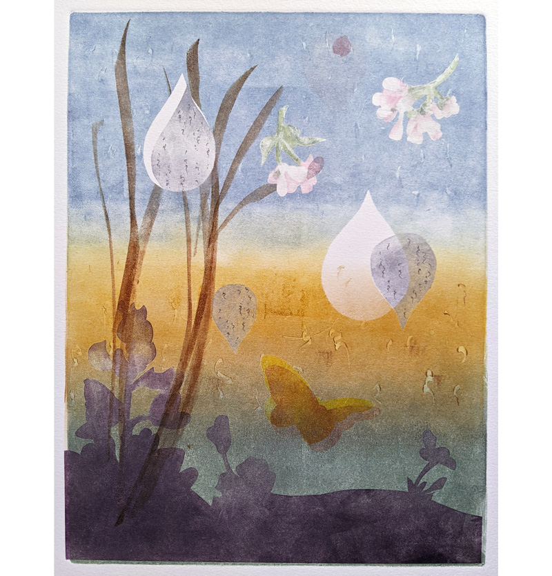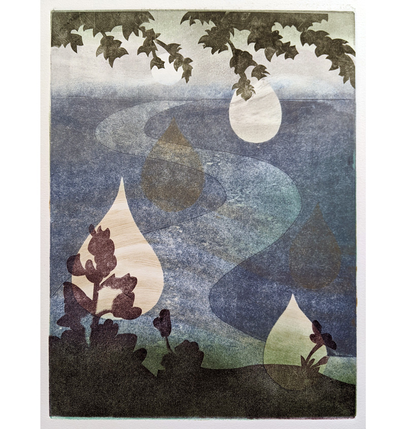 I study sumi-e, traditional Japanese brush painting, as a weekly exercise. The immediacy of the art form provides a contrast to the printmaking process, and the focus, control, and freedom of sumi-e informs my other artwork. Over the years, I have become more playful in my use of imagery and have developed a vocabulary of symbols that speaks of time, values, hidden stories, and our sense of strength and fragility. But whatever the media or subject matter, my work seeks to convey a sense of quietness and reflection.