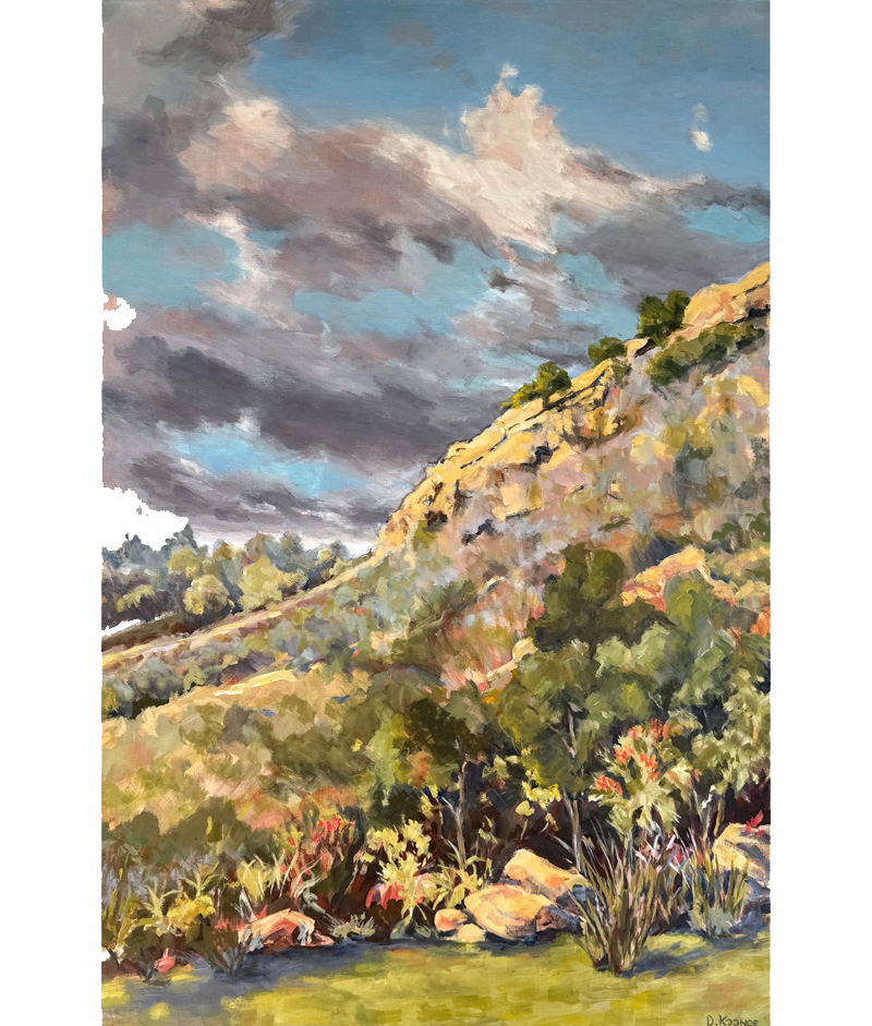 A painter of landscapes who specializes in the exploration of the uses of light and shadow in oil and acrylic media, Debby Koonce is inspired by vistas, architecture, quaint alleyways, gated compounds and garden settings. Her sense of color and scale and interplay of dark and light are focused to create a feeling of realism that is heightened by imagination.